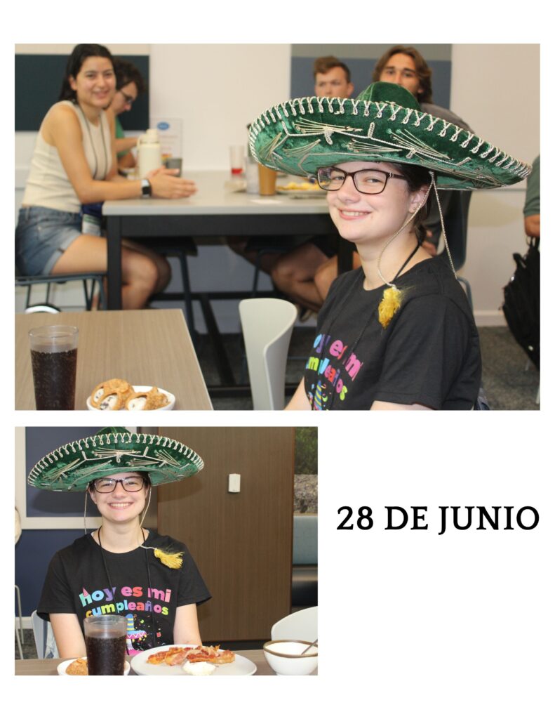 ¡Feliz cumpleaños a Erynn! Ella recibió el sombrero y la academia cantó “Feliz cumpleaños” para celebrar. Sus padres le dieron una camiseta que dice “Hoy es mi cumpleaños” para este día especial. ¡Ahora, ella tiene diecisiete años!